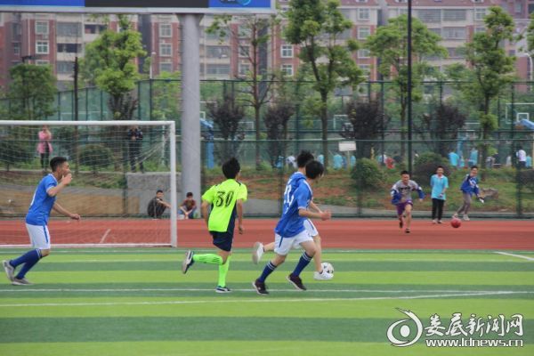 (双峰一中党委书记、校长毛果明为比赛开球)